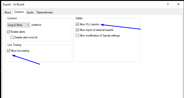 Verify the bins to permit DLL imports and allow the Knowledgeable Advisor to commerce.