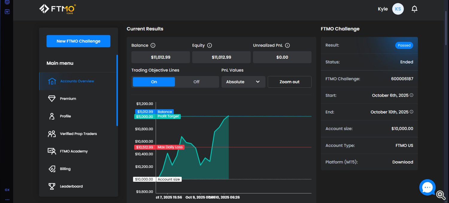 October 6, 2025: An early adopter of Alpha Pulse AI begins the FTMO $10k problem.