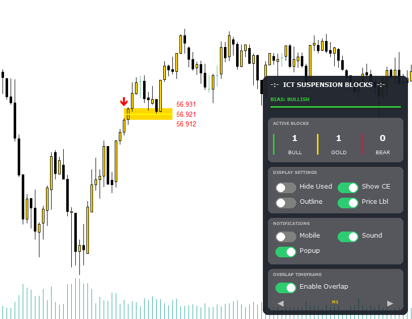 A Suspension Block is a selected 3-candle formation that signifies a momentary pause in institutional order circulation earlier than a continuation or reversal. Not like a normal Order Block which is commonly simply the “final down candle,” a Suspension Block entails particular worth gaps between the open and shut of consecutive candles. It represents a zone the place worth is “suspended” and is very prone to be revisited.