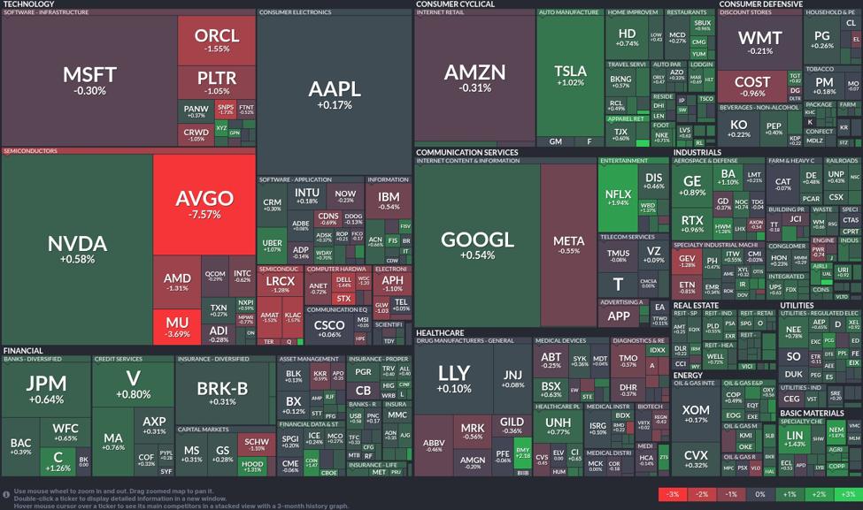 • Semiconductors: The semiconductor scene is split with Nvidia (NVDA) rising by 0.58%, exhibiting resilience amid trade strain. Nonetheless, Broadcom (AVGO) plummeted by 7.57%, doubtless indicative of investor unease surrounding its market forecasts or sector-wide disruptions.