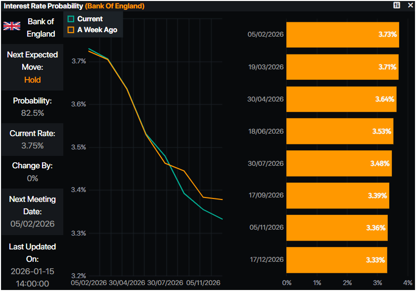 The swaps market had priced in 42 foundation factors of easing by the Financial institution of England by the top of 2026, revealed Prime Market Terminal information.